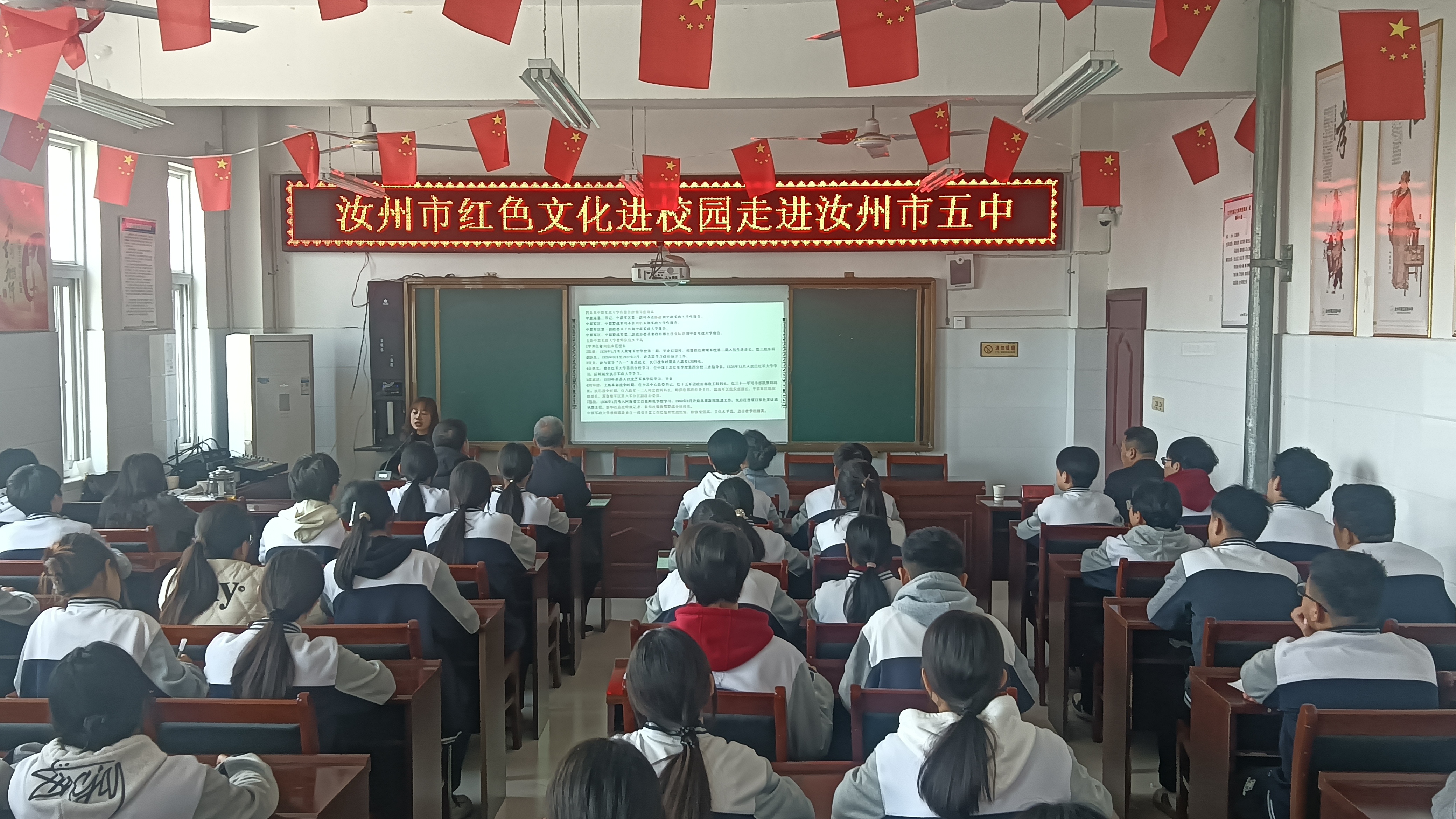 汝州市红色文化宣讲员、市五中团委副书记李瑞霞以《缅怀先烈志,吾辈当自强——中原军政大学旧址汝州文庙》为题,讲述解放战争时期中原军政大学在汝州成立的时代背景、基本建制,办学特点、学员的生活学习情况,并鼓励同学们多到革命场馆参观学习。1948年8月,中原军区中原野战军司令员刘伯承到临汝县城向中原军政大学学员作《关于当前形势和我们的任务》的报告。该校为中国人民解放事业培养大批优秀军政干部。