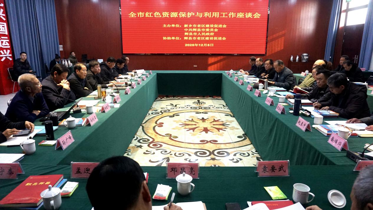 为深入贯彻落实习近平总书记关于革命老区建设的重要指示精神,全面落实国家、省关于红色资源保护与利用工作部署,共同推动全市红色资源保护与利用工作和老区红色文化的传承与发展。2025年12月5日,由新乡市老区建设促进会、中共辉县市委员会、辉县市人民政府主办,辉县市老区建设促进会承办的“全市红色资源保护与利用工作座谈会”,在辉县市常村镇孟电生态园召开并圆满结束。