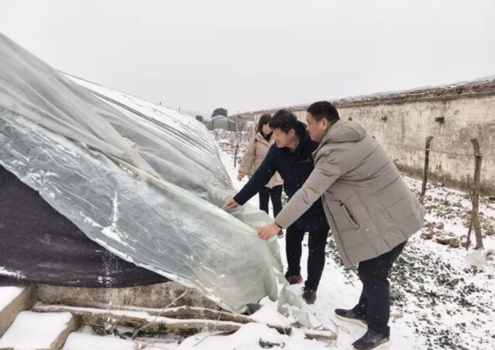 该市农业农村部门针对低温天气易造成农业设施受损、作物生长缓慢和受冷受冻等,向老区农户提前发布设施农业加固棚室等防范提醒,并深入一线指导做好除雪应对工作。