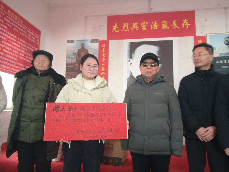 活动在庄严肃穆的鞠躬致敬中拉开帷幕,全体人员向高金城烈士三鞠躬,致敬烈士忠魂、传承革命精神、赓续奋进力量。随后,现场全体人员共同聆听了县越调剧团精心录制的歌颂高金城烈士的戏歌,悠扬的乡音唱腔中,烈士的家国大义与赤胆忠心深深感染着在场每一个人。仪式上,王志民代表县老促会向高金城纪念馆赠送了存储该戏歌的U盘和一台多功能音响设备,让红色旋律在纪念馆久久回荡,让英烈事迹随乡音广为传颂。