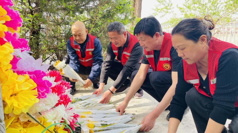在烈士安息的墓碑前,志愿者们手持抹布、扫帚等工具,分工协作对墓地周边环境进行清扫净化。大家俯身认真擦拭烈士墓碑,轻轻拂去碑身的灰尘与青苔,仔细清扫周边落叶、杂草与杂物,以虔诚质朴的行动,为英烈整理安息之所,并依次敬献鲜花,表达对革命先烈的深切缅怀与崇高敬意,深深的感念革命先烈为民族解放、人民幸福抛头颅、洒热血的赤诚担当与牺牲精神。